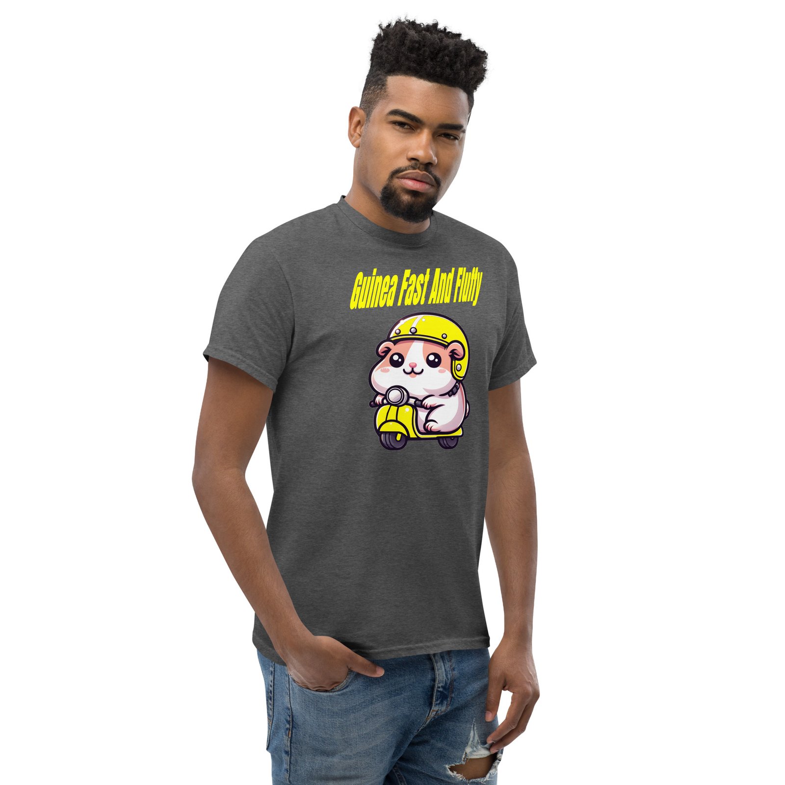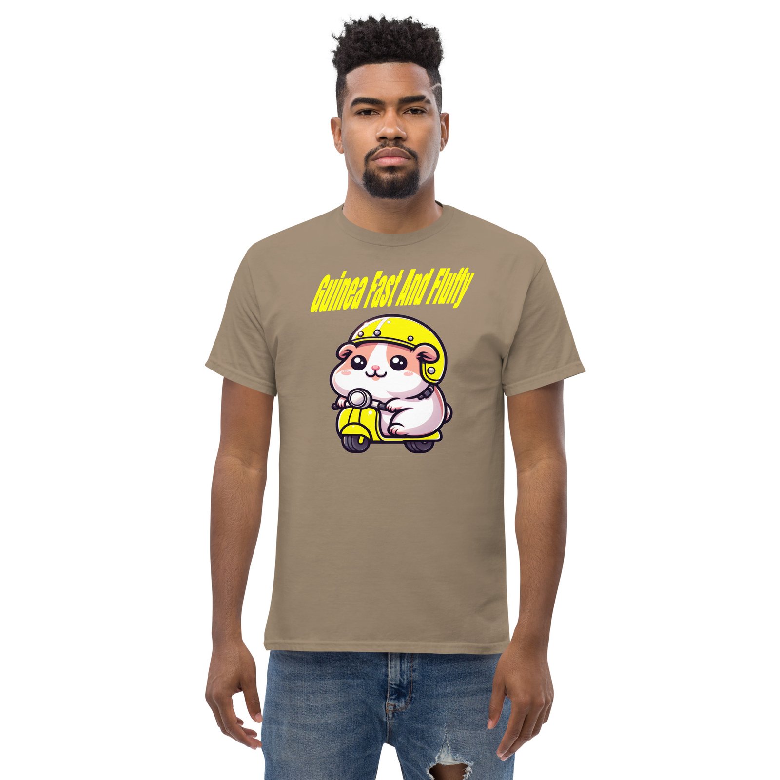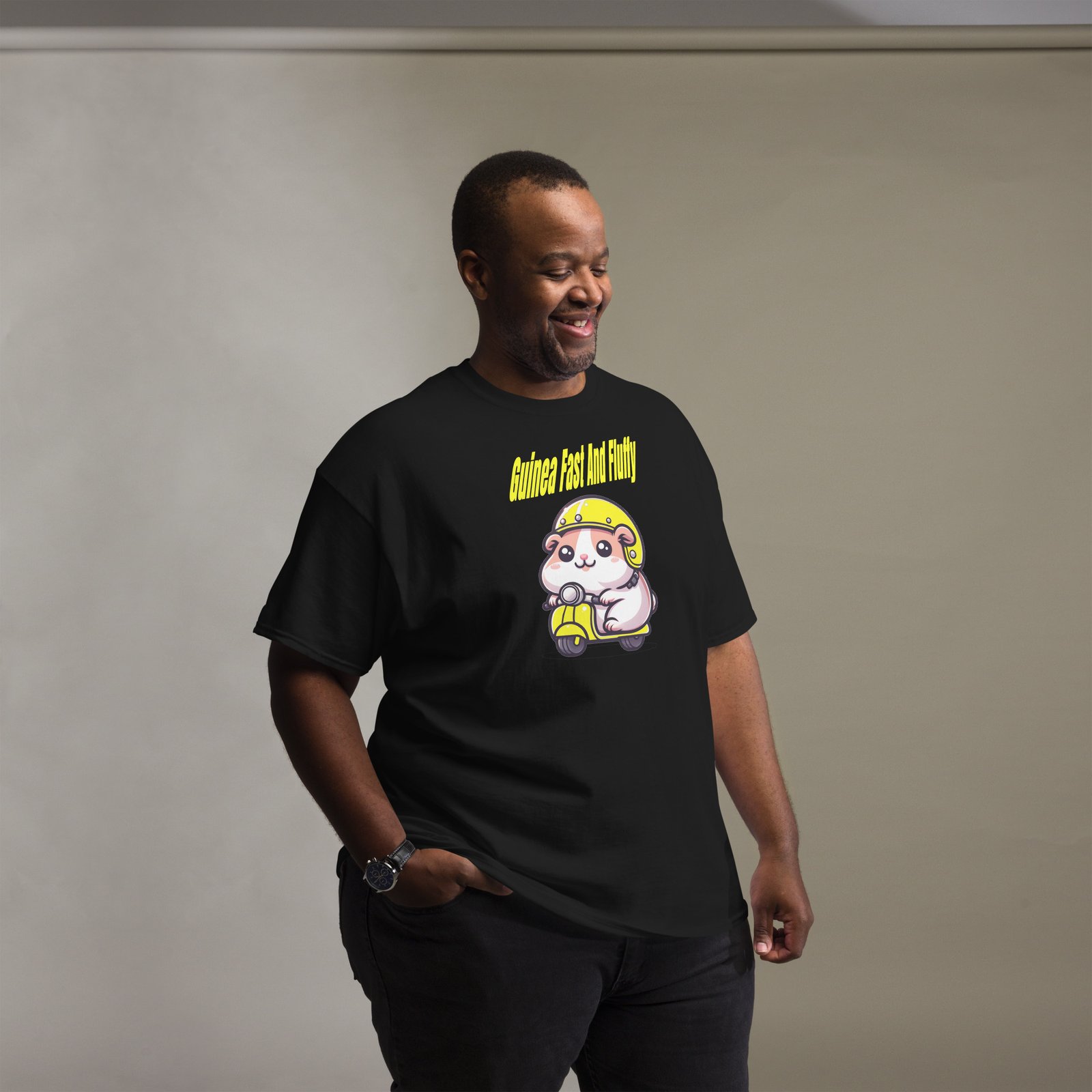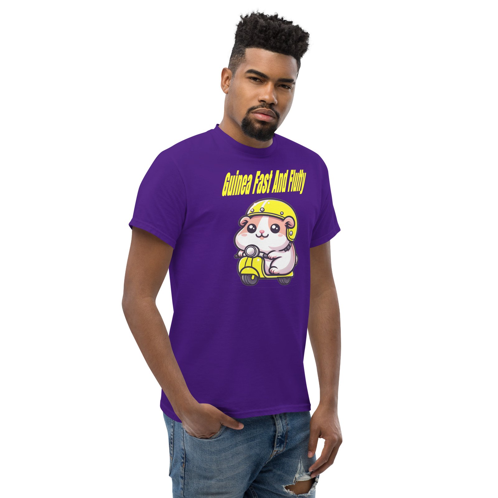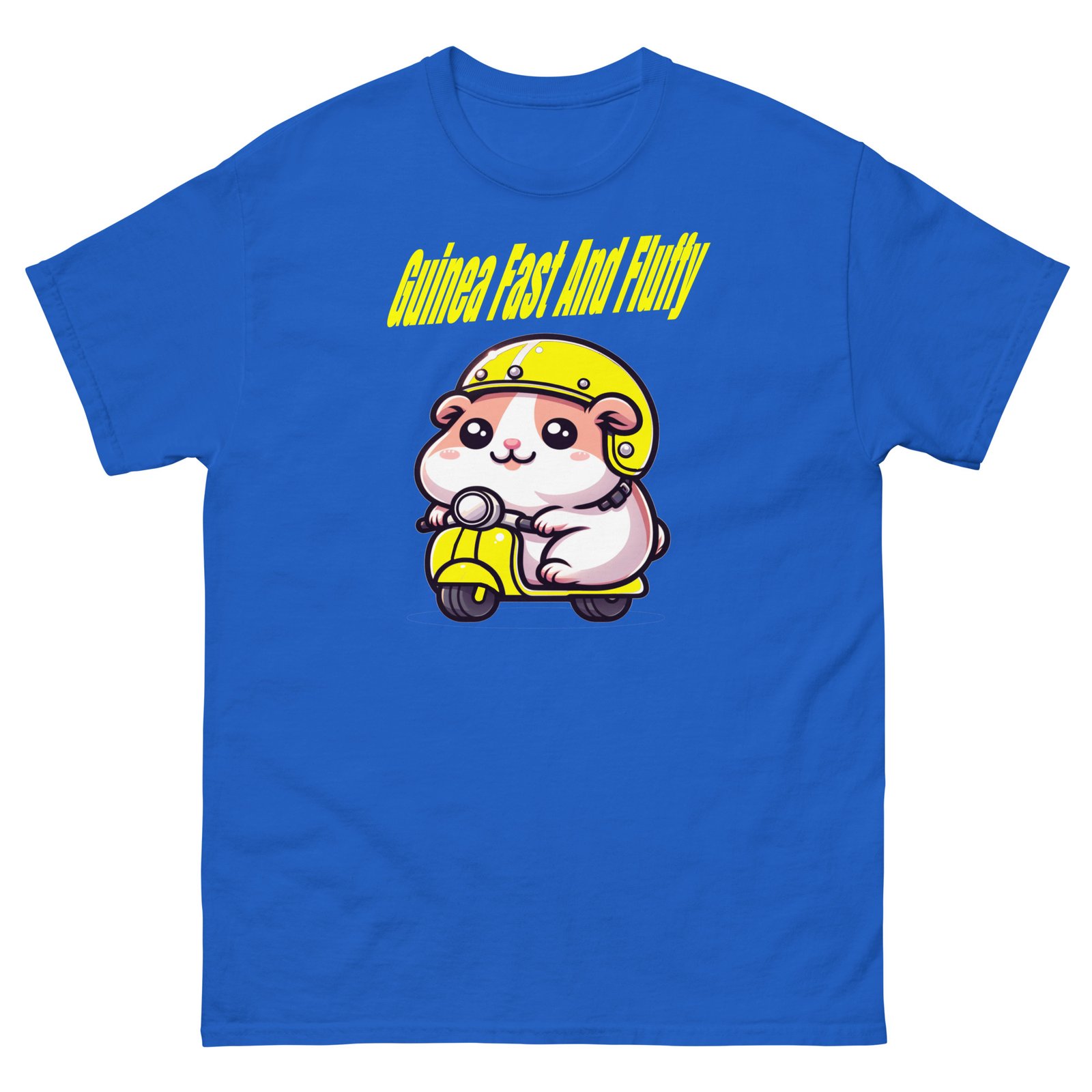 This Guinea pig loves his moped, He really is fast and fluffy.