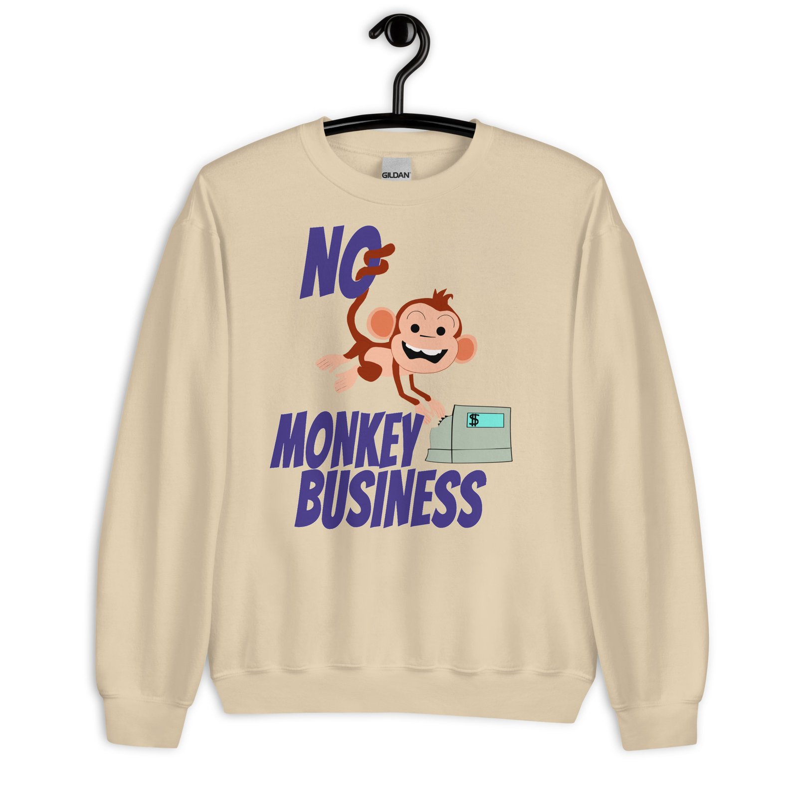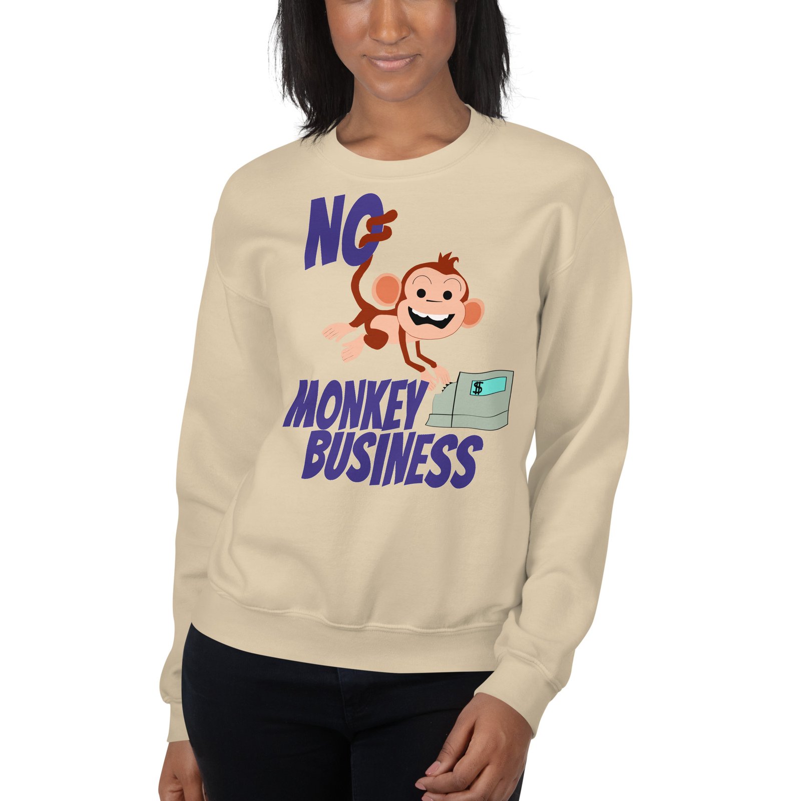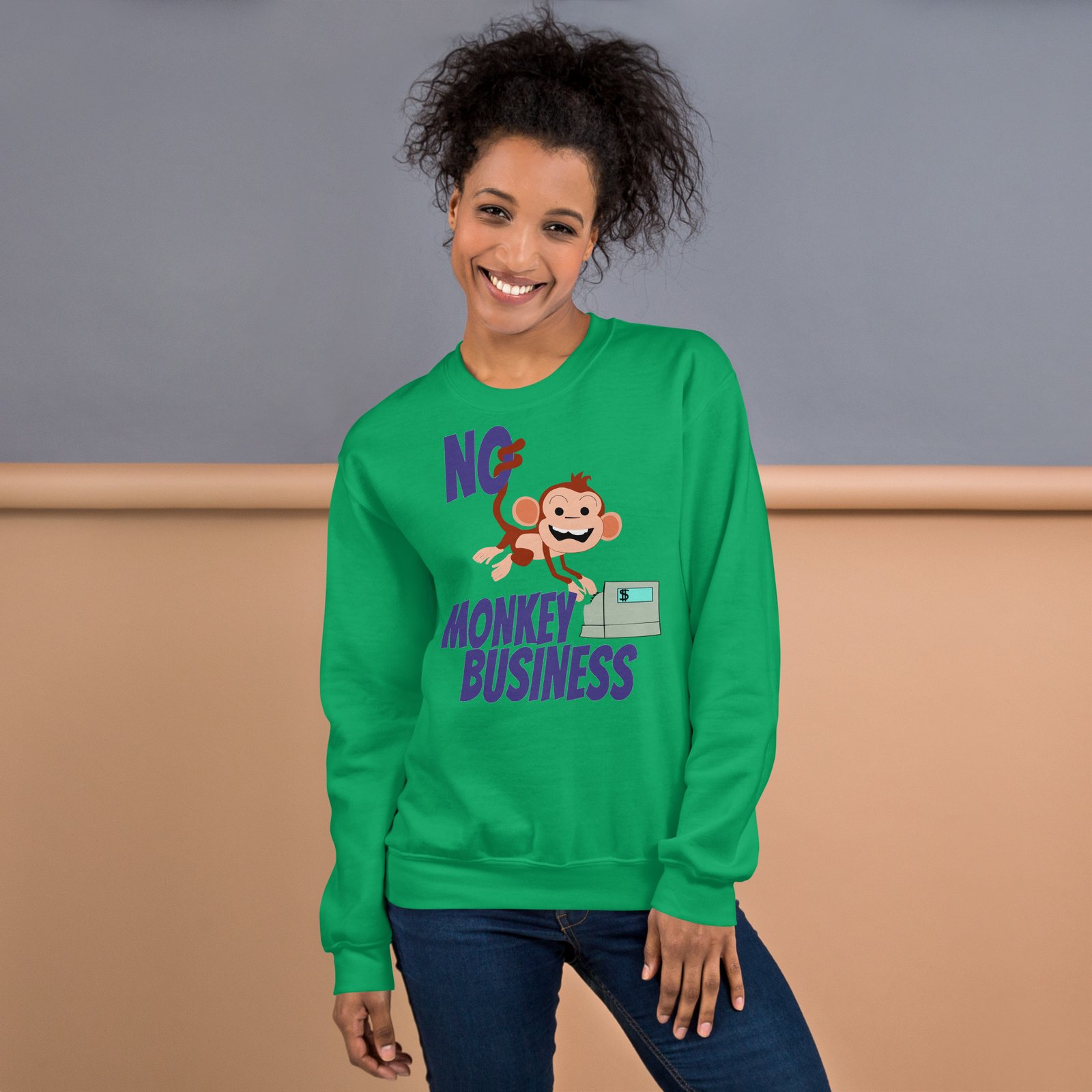 The No Monkey Business sweatshirt is part of the Luumikit universe: playful characters, cozy apparel, and humor that feels good to wear.