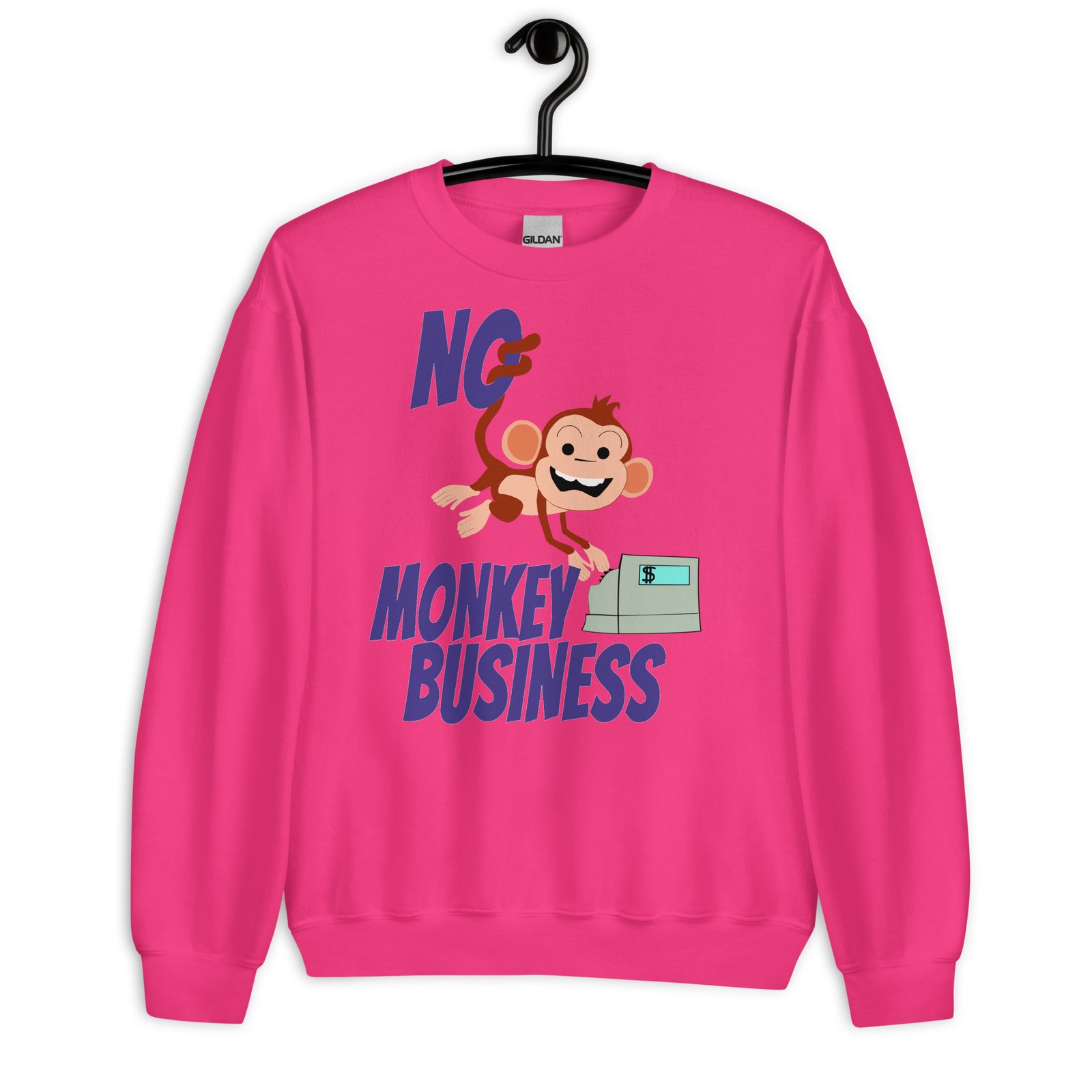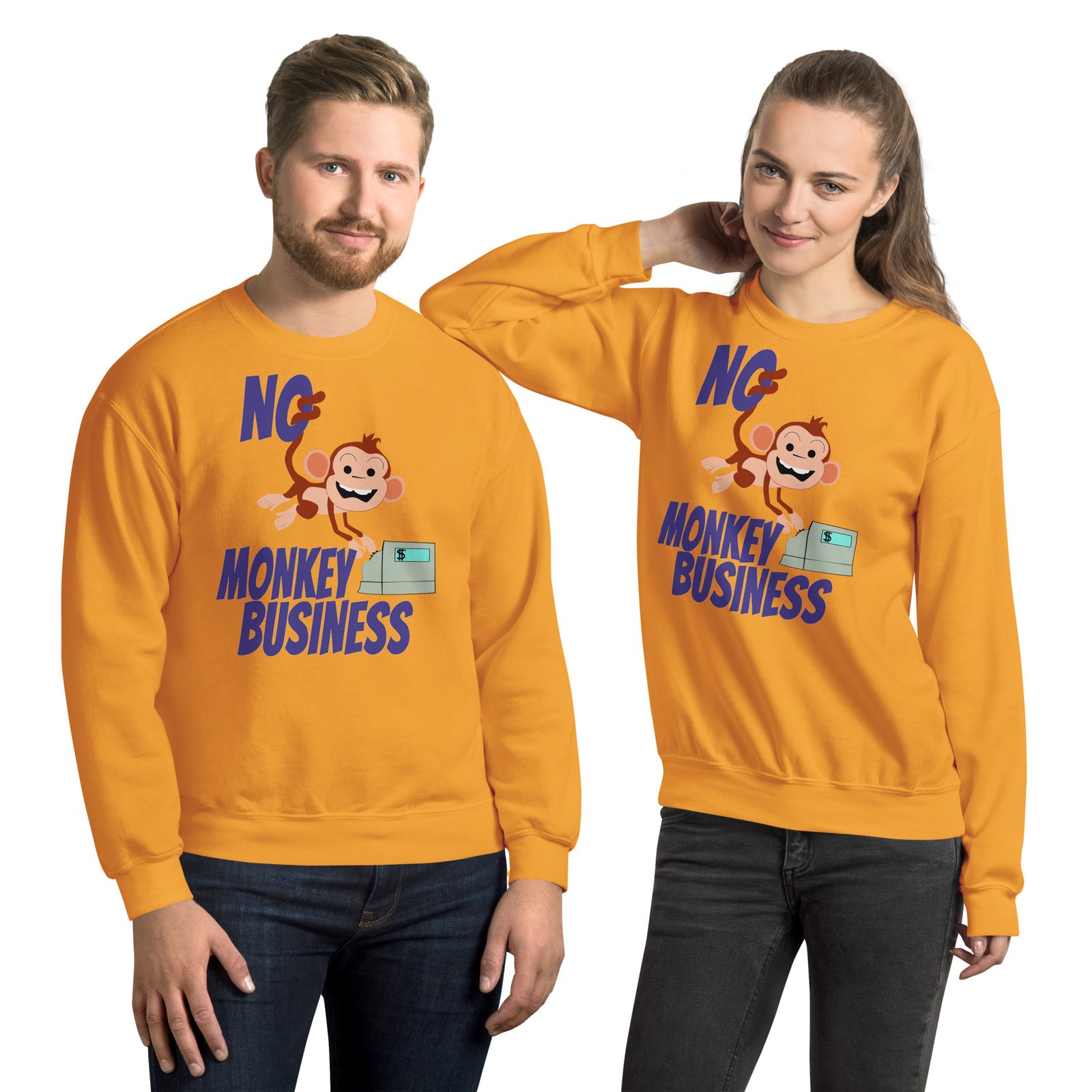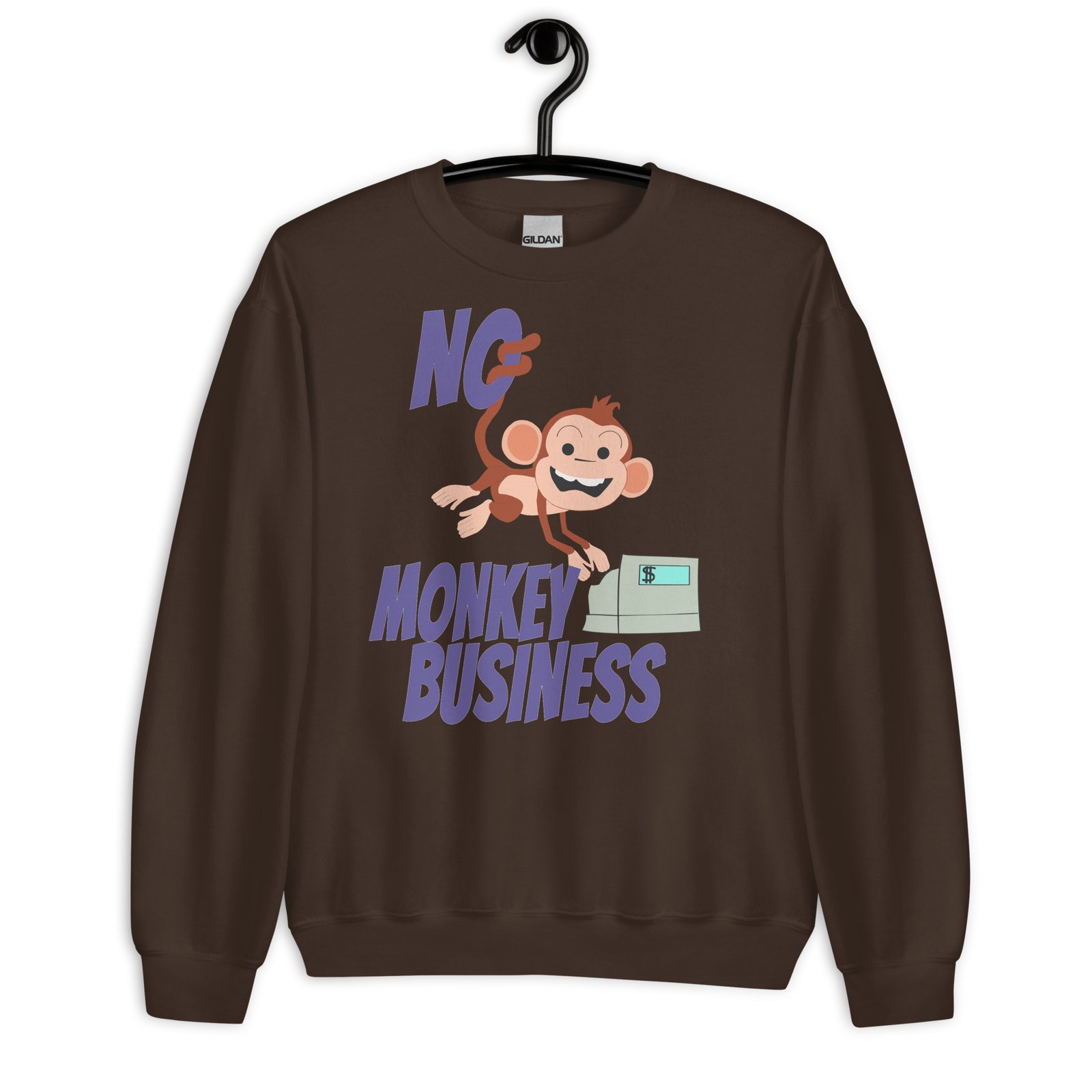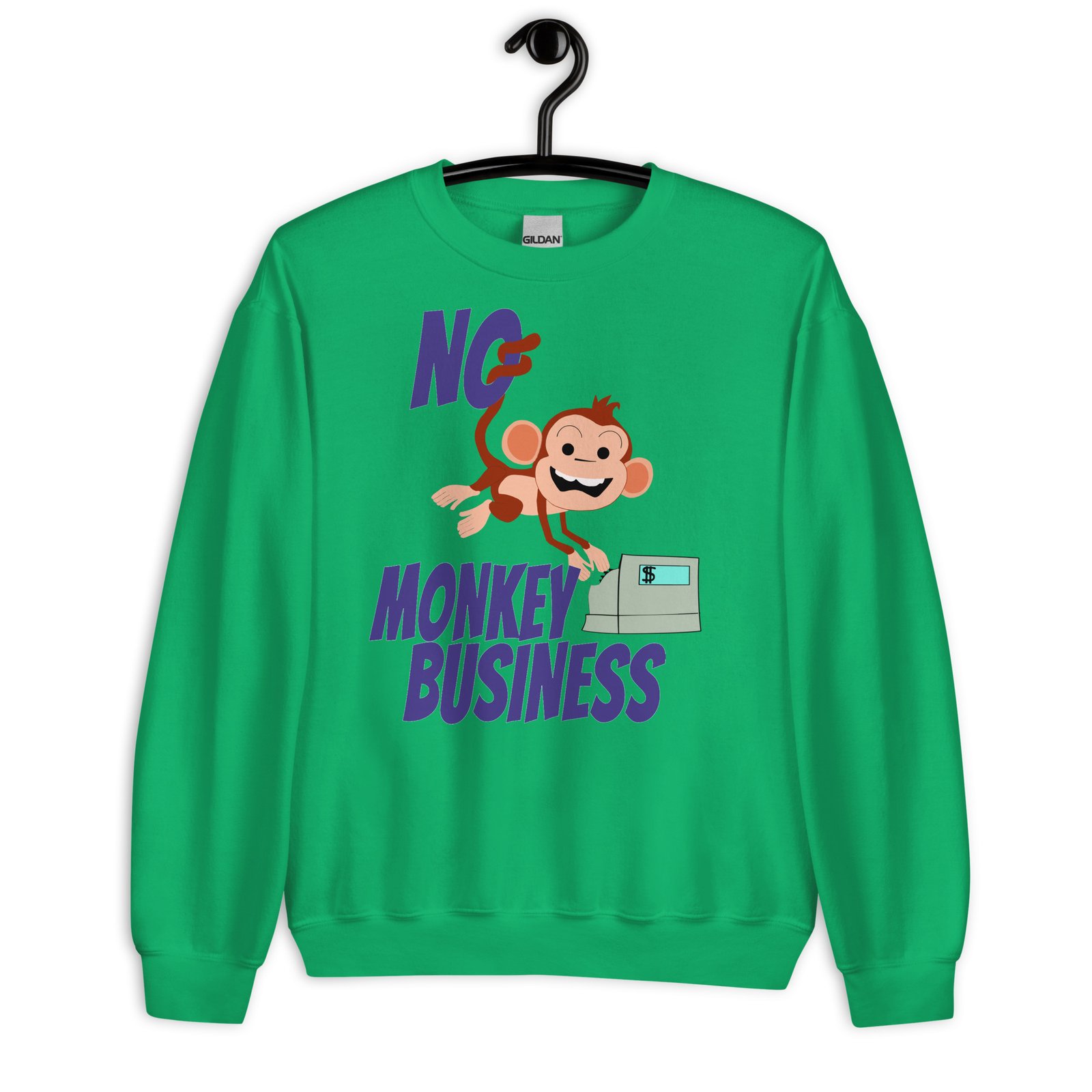 The No Monkey Business sweatshirt is part of the Luumikit universe: playful characters, cozy apparel, and humor that feels good to wear.